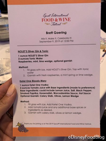 Overall, this a great Low Cost Seminar at the Epcot Food and Wine Festival. Not only do you get an hour or so inside air-conditioning, but you get to learn from the experts! We loved being able to literally get our hands dirty, and taste how our hard work pays off. I walked away with new knowledge of gin and vodka distilling, a new-found respect for a classic cocktail, and a new idea for entertaining at home. Plus, two cocktails!