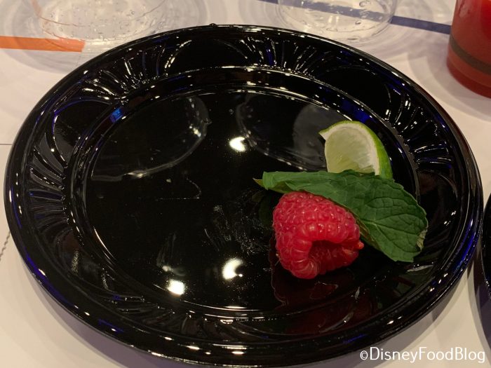 We then discovered the use of our first garnish plate — it was time to kick up the gin and tonic! We were encouraged to choose what we liked from the raspberry, lime, and mint and to mix it into our cocktail. We got a little crazy and chose all three.