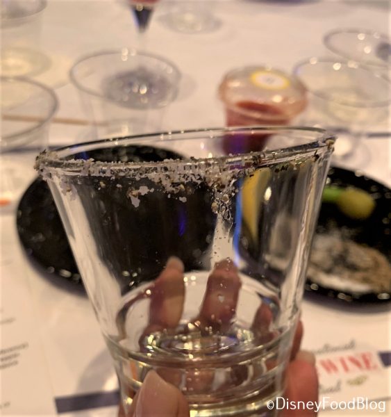In fact, the customization starts with the glass! We were told we had the choice to salt the rim (or not!) by using our garnish plate and pre-measured spices. Or to get really crazy, you can salt AND pepper the glass. Sign me up!