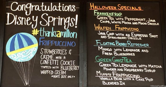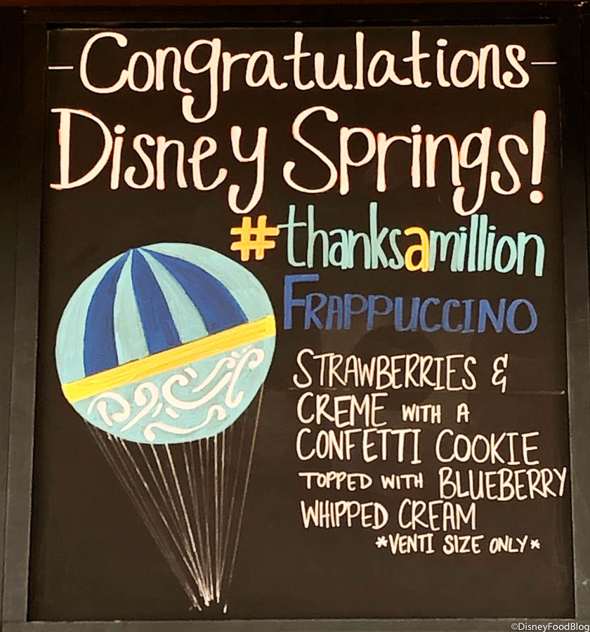 Starbucks is also celebrating Disney Springs’ 1 million follower mark with a drink, the #thanksamillion Frappuccino. This drink sounds pretty sweet, don’t ya think?