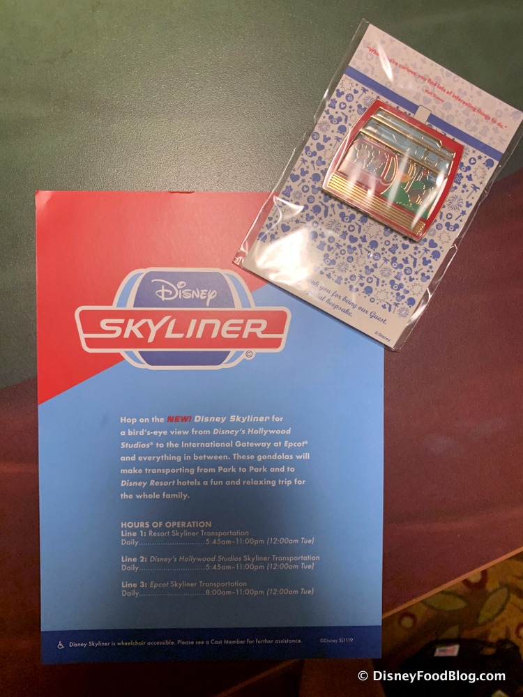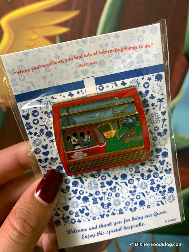 The special present included information on the Skyliner’s hours of operation AND an exclusive Skyliner pin for resort guests only!