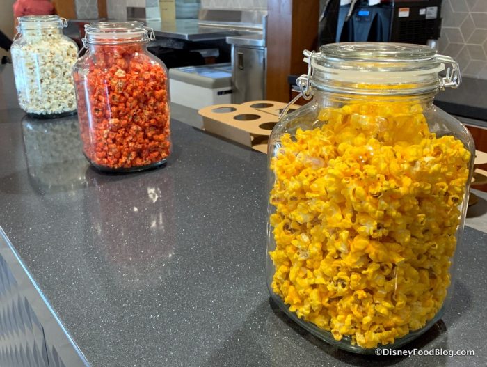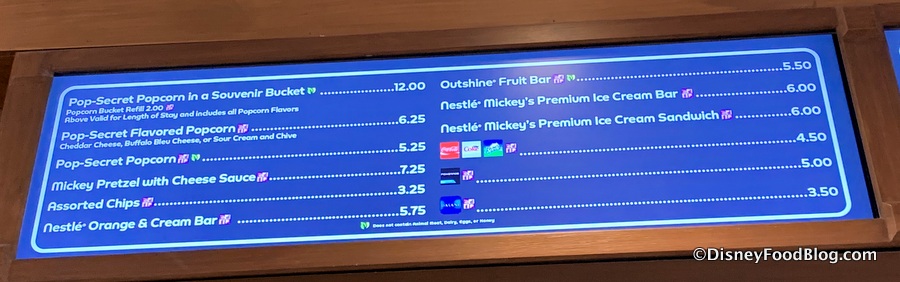 Yep, on the menu you can see our beloved gourmet popcorn. (Also note those price increases on pretzels and popcorn, y’all.)