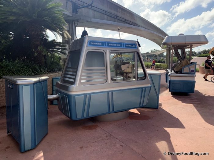 That’s right — amid all the construction walls, cranes and heavy machinery, we noticed the Future World Gourmet Popcorn Cart didn’t have any popcorn! Huge thanks to our buddy @tomdoesdisney for pointing this out to us last night!