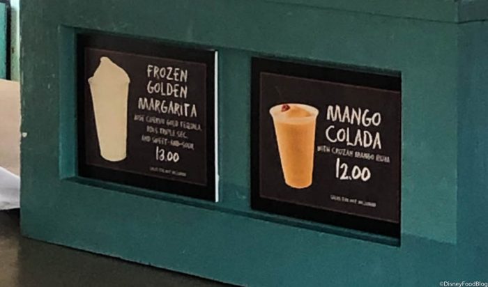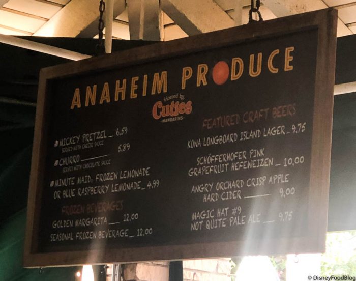 Over at Hollywood Studios’ Anaheim Produce, they’re a bit conflicted! The hanging board reads that a Frozen Golden Margarita is $12.00 while the placard reads $13.00.