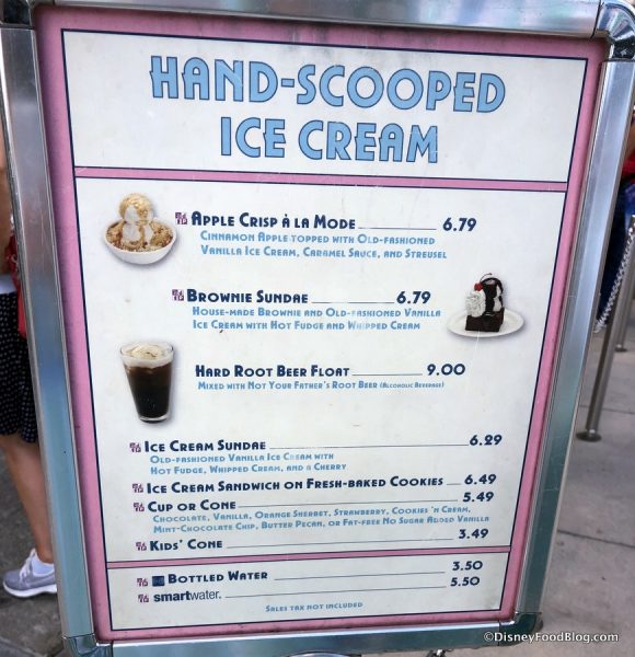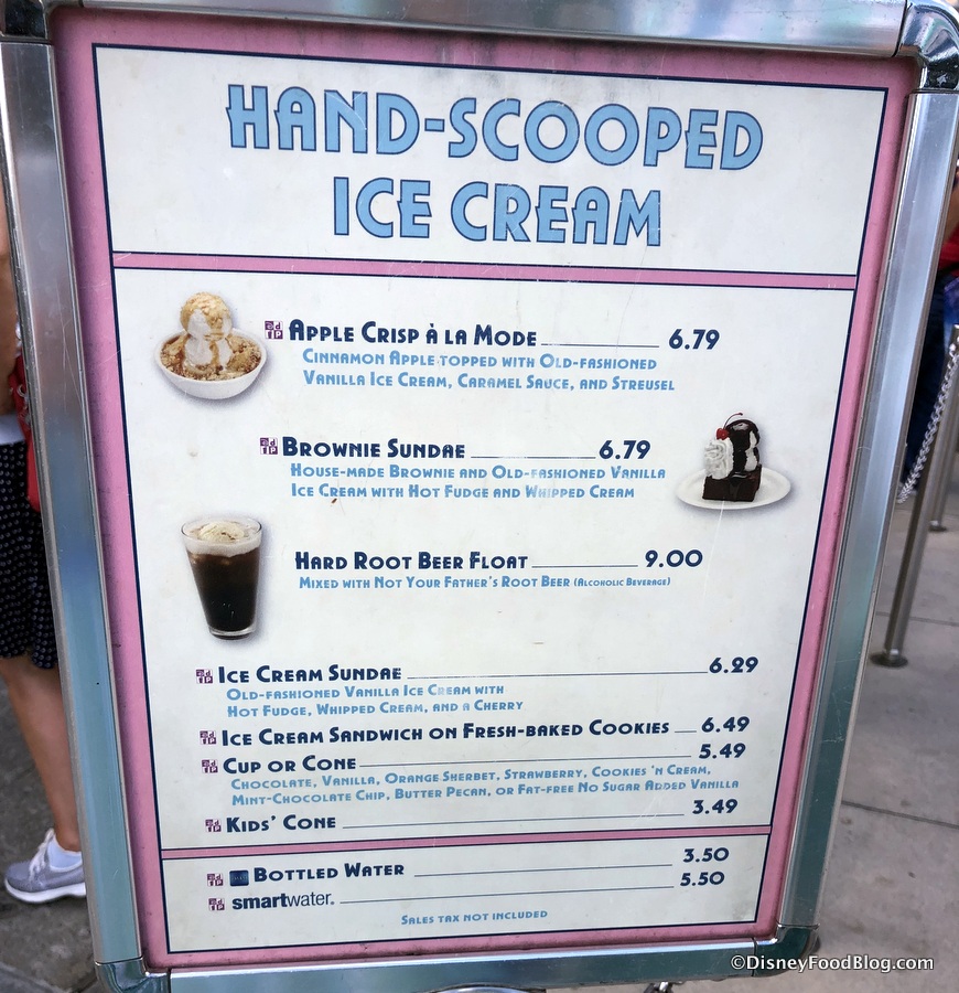 Price increases are also showing at Hollywood Scoops. A Hard Root Beer Float was previously $9.00.