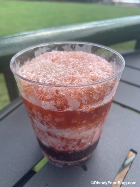 The serving here is small (really small), so be prepared for that. We really enjoyed this drink — but warning, it melts FAST in the Florida heat. This little drink will cost you $12.00. TWELVE DOLLA. So…I guess you’re paying for the cool factor of the boozy freestyle machine.