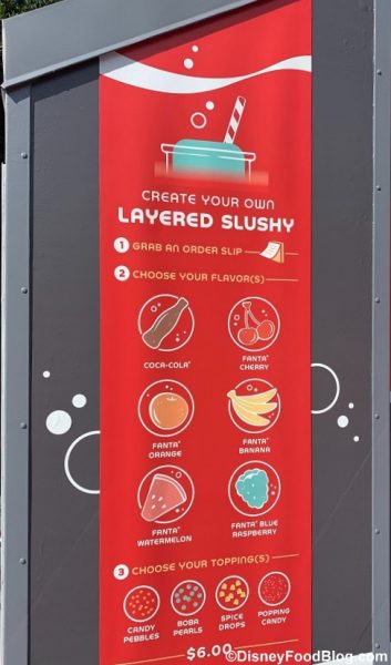 In order to create your own custom Coca Cola concoction, you’ll need to select your flavors and toppings on a special Cool Wash order slip! Mix and Match however you like — there are no rules on a Disney vacation, bb!