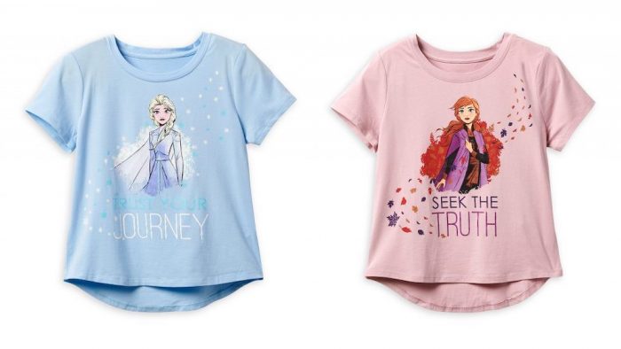 Starting October 4th, new Frozen 2 products will be lining the shelves in the parks and popping up online. Don’t worry, Arendelle Aqua — the parks are definitely big enough for the two of you. You can trust your journey or aim to seek the truth with the Elsa and Anna Frozen 2 Shirts…