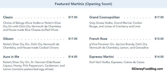 The Beauty and the Beast-themed lounge will replace the Resort’s Mizner’s Lounge and is expected to open sometime this fall. While we recently got a sneak peek at a few of the menu items, Disney has now released the FULL MENU!