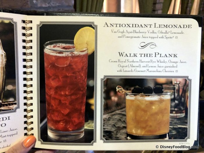…as well this whimsical Antioxidant Lemonade featuring Van Gogh Acai-Blueberry vodka and pomegranate juice, or the Walk the Plank made with Crown Royal Northern Harvest Rye Whisky and orange juice.