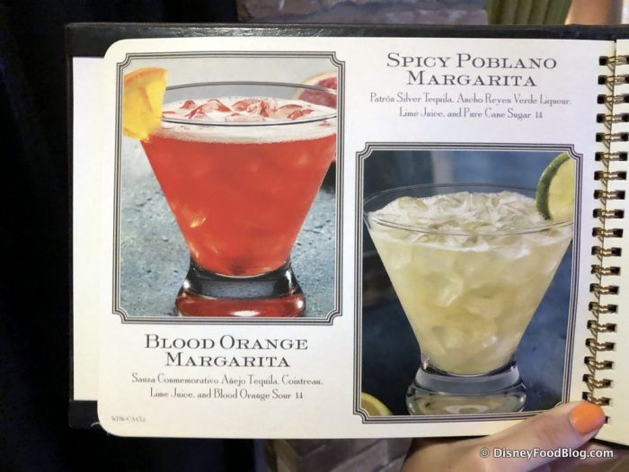 If you’re in more of a tropical mindset (or at least trying to be) you can choose the Blood Orange Margarita, a Spicy Poblano Margarita…
