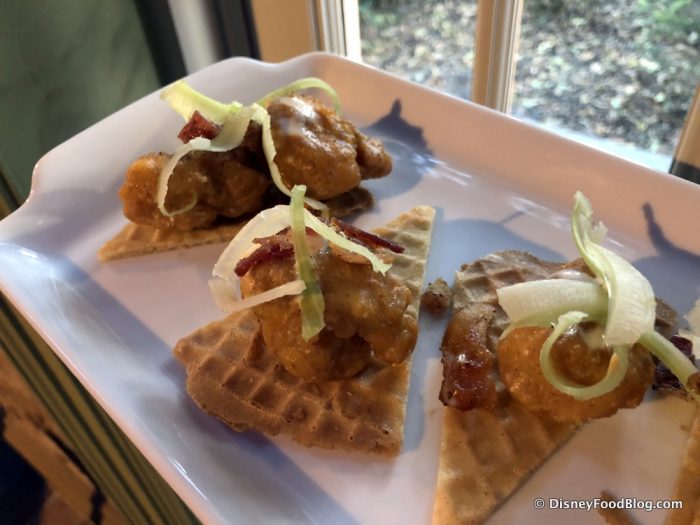 We gotta say our Chicken and Waffles looked a little bit like a let down when they came out to us (are those…waffle cones?!?), BUT we’re happy to report they’re MUCH more enjoyable than they look!