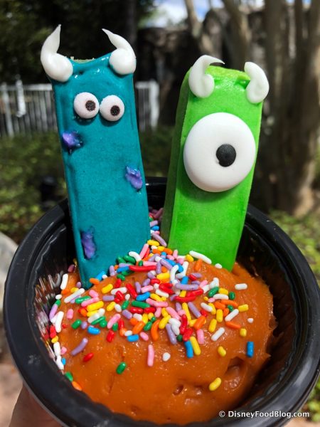 So, snag your best monster pal and head on down to The Artist’s Palette to try the Mike & Sulley Cookie Butter. The cost is $5.99 or one snack credit if you’re on the Disney Dining Plan!