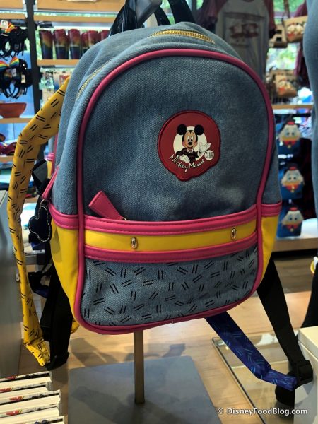 But there’s been one key piece we saw on Disney Style’s blog that we haven’t been able to spot in the wild until earlier today when all of the sudden the clouds parted, and there it was — THE RETRO MICKEY MOUSE BACKPACK!