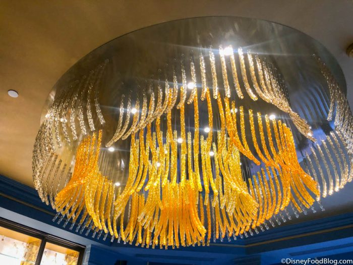 You definitely get a feeling of movement along with the color of Belle’s dress in the chandelier! It seems like it’s twirling, much like Belle did around the ballroom with Beast. This definitely was our favorite part of the room as it felt both grand and fantastical!