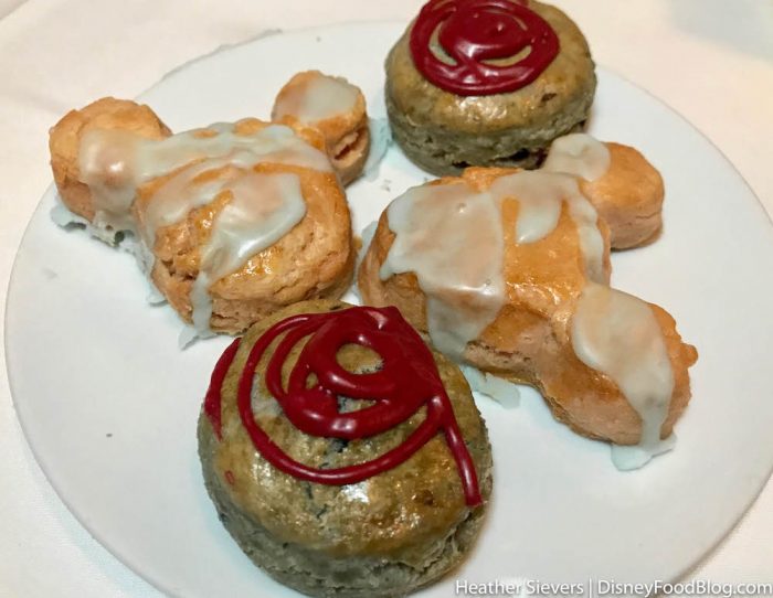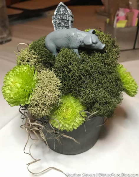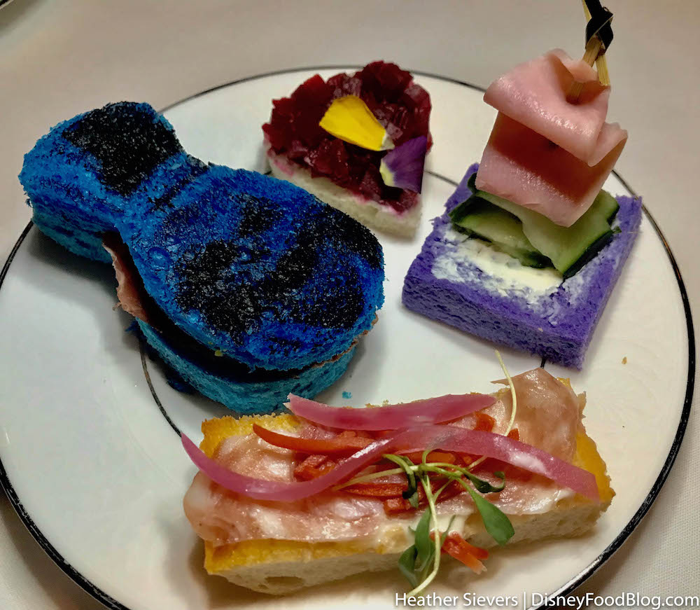 The tea sandwich that was stacked high with cream cheese, cucumber, and ham just happened to be inspired by the stretching portraits, while the beet tea sandwich was a reference to your “beating heart” during the attraction. How cute!! And, we can’t forget that the banh mi was in memoriam to Rosie the Pig in the Haunted Mansion graveyard (yes, the tea sandwich is ironically made with pork).