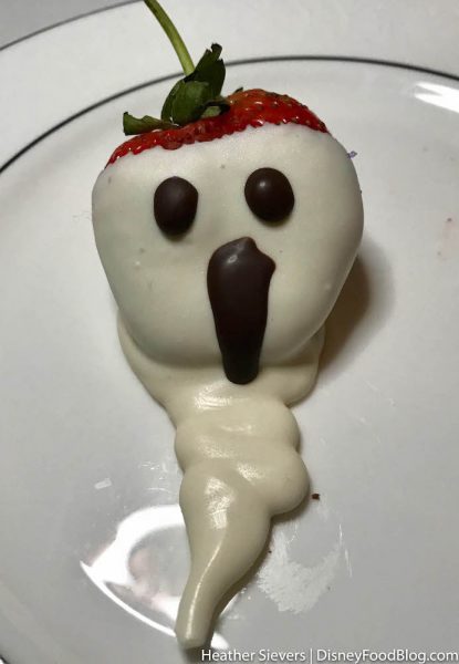 We couldn’t help but enjoy the terrifying Hatbox Ghost Chocolate Covered Strawberry…