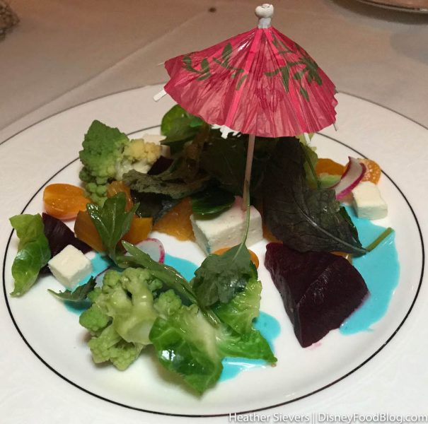 … And a Romanesco and Gooseberry Salad with Lychee Vinaigrette, which we thoroughly enjoyed as well!