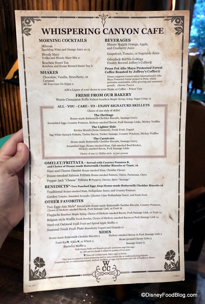 Whispering Canyon Cafe has also updated its breakfast and lunch menus with the plant-based symbols, but their dinner menus were still printing during our visit.
