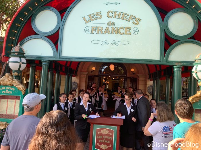 Even though the event is scheduled to start at 9:15AM, we highly recommend arriving early! Epcot doesn’t open until 9AM, but guests with dining reservations are allowed in earlier. You’ll be “held” at the bridge between France and the United Kingdom until it’s time for breakfast — but even still, we were allowed in around 9:05AM.