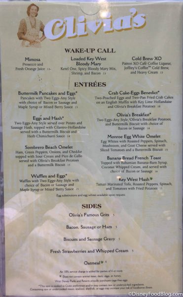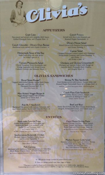 We found a large menu out front. Note all of these drinks are also available inside Olivia’s!