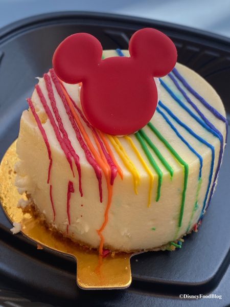 In celebration of Gay Days, Disney has fully embraced the “Love Comes in Every Color” slogan and has released a plethora of snack items that are sure to wow your tastebuds! The Rainbow Cheesecake is no exception!