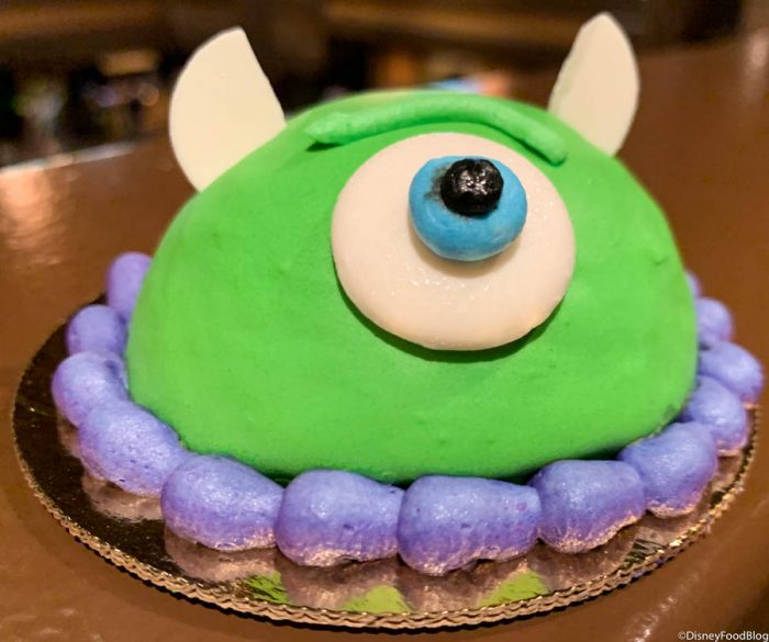 You can find the Mike Wazowski dome cake at Kona Island in Disney’s Polynesian Village Resort for $5.99 or a snack credit if you’re on the Disney Dining Plan!