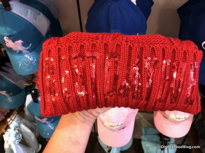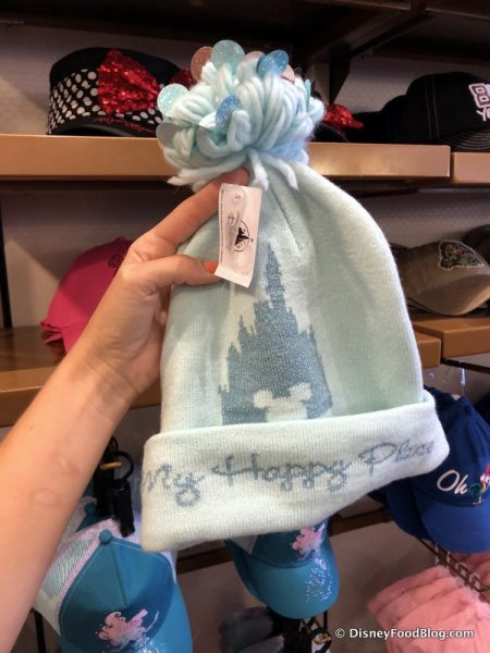 Celebrity 5 &10 also reminded us today that its almost time to get out our winter coats and mittens (sigh). We spotted two new adorable Winter Hats for $24.99. There was this cute “My Happy Place” Hat that resembled a familiar shade of Arendelle Aqua…