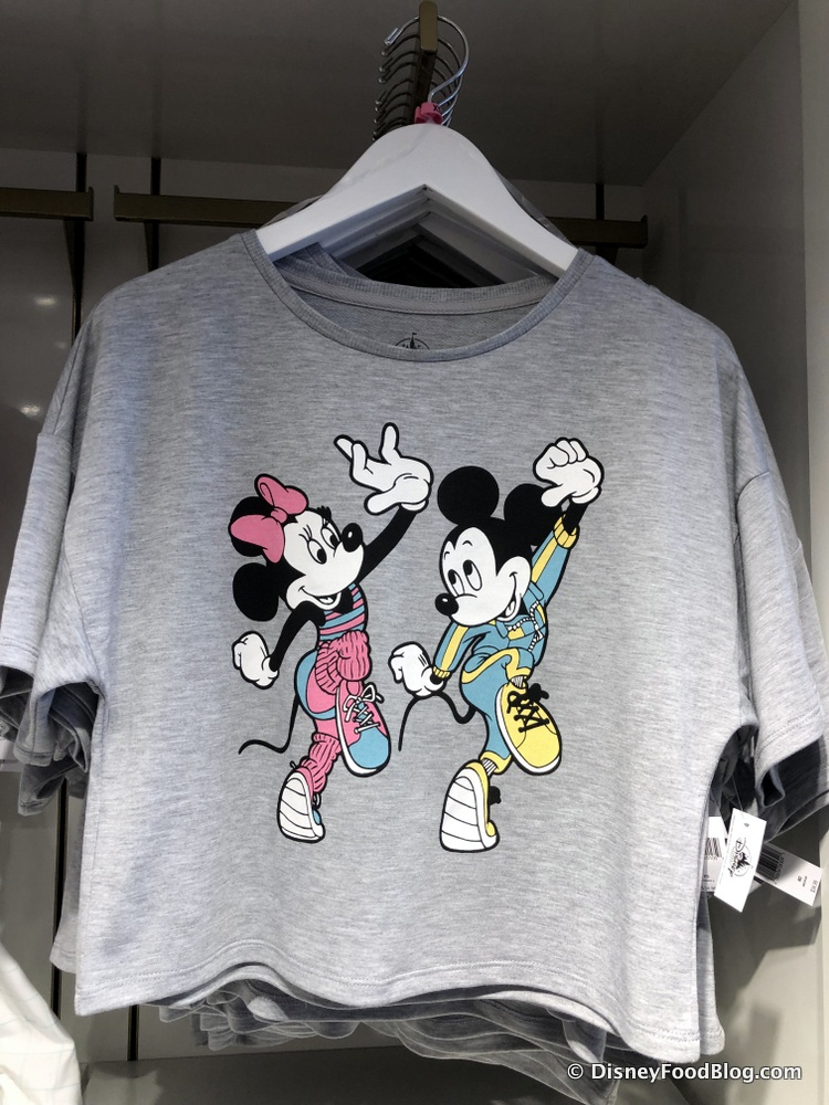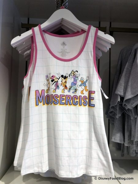 Speaking of ’80s – ’90s relics, have you been keeping up with all the trendy merch that’s been WHAM!-ing the parks (not so subtle George Michael pun intended)? If not, allow us to walk you through some of this totally tubular new merch! It originally all started with the Retro Mickey Mouse Club gear, and has now progressed into this adorable new line of Mousercise stuff!