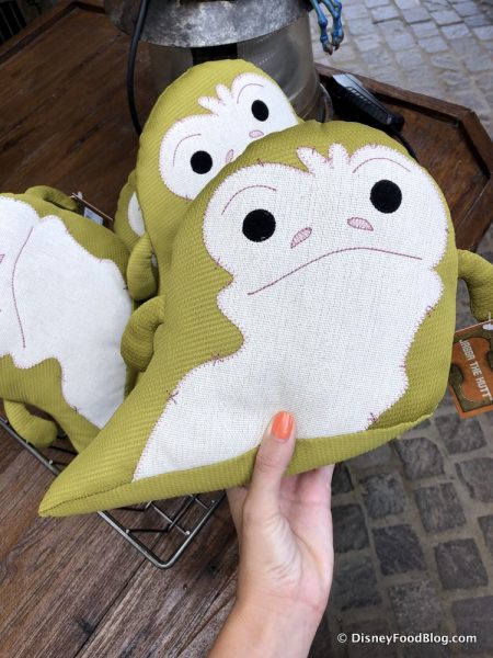 On our trip around the Black Spire Outpost, we saw the Jabba Plush for $22.99 were back in stock! We know he’s technically a bad guy, but he looks so lovable and cuddly as a toy!