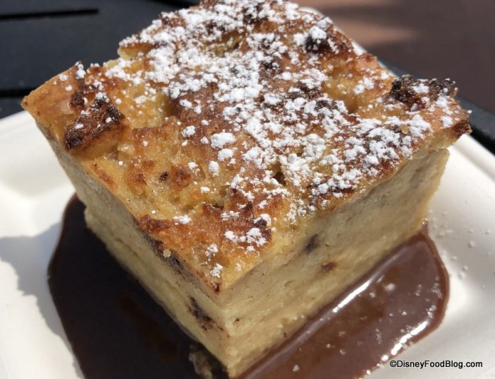 We weren’t trying to save the best for last, but it just kinda turned out that way! Here it is — the Mexico booth’s Chocolate Bread Pudding in all its glory (dun dun DUN!)! This isn’t an optical illusion — it’s just really that BIG!