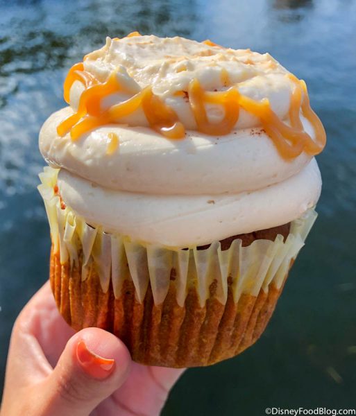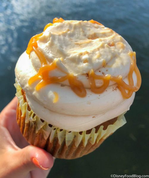 We’ve tried pumpkin shakes, pumpkin beignets, and just about every other pumpkin-y offering Disney has thrown at us. But just when we thought we had tasted every bit of this Fall flavor we could handle (haha…j/k we love us some pumpkin!) we found a new Pumpkin Caramel Cupcake over in Epcot.