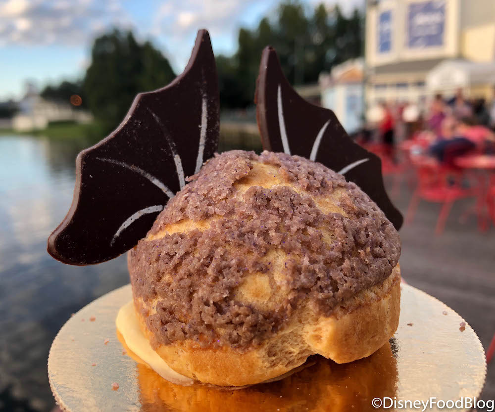 You can flutter into the BoardWalk Bakery and get your Bat Caramel Cream Puff for $4.29 or a Disney Dining Plan snack credit!