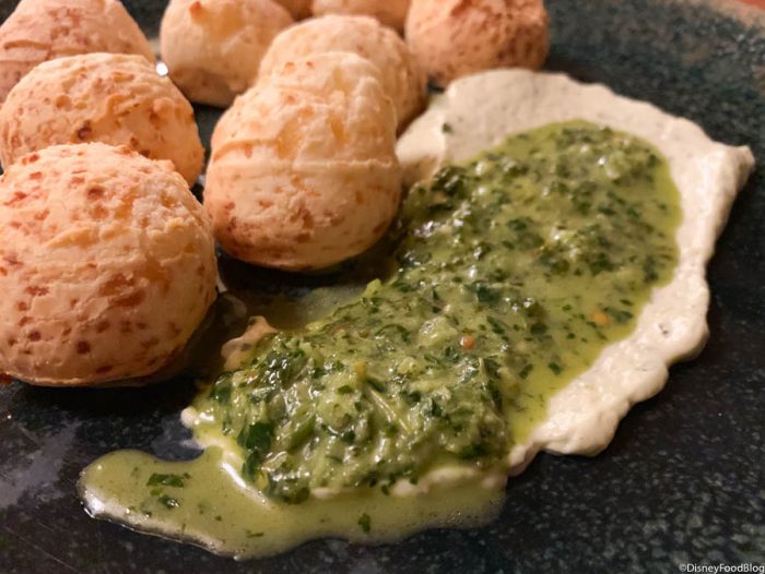 First up, the Pao de Queijo. This is VERY similar to the Brazilian Cheese Bread that can be found during the Epcot International Food and Wine Festival, buuuuut this option is served with chimichurri cream cheese. And friends, this was a total game changer!