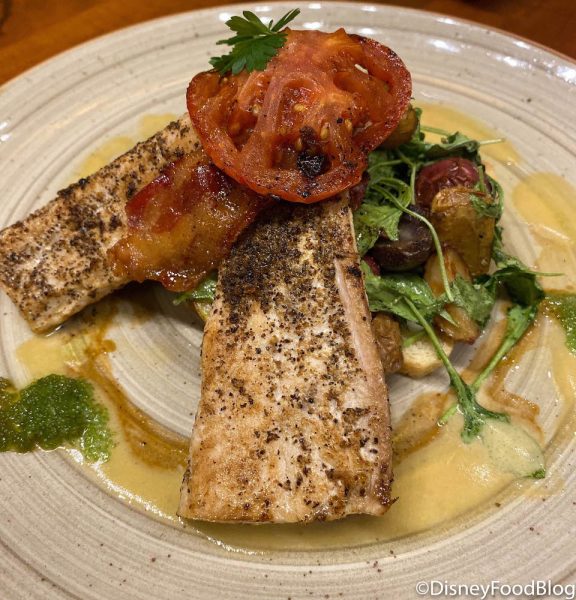 The Mahi BLT is more deconstructed with the bacon, lettuce, and tomato simply topping the fish. While the mahi-mahi had an incredible mildly sweet flavor, the BLT felt a bit misplaced like they were just accidentally put there. While we would have loved an actual Mahi BLT sandwich, we think that the mahi-mahi itself would have been better with an actual side salad to go along with the potatoes.