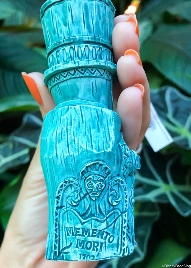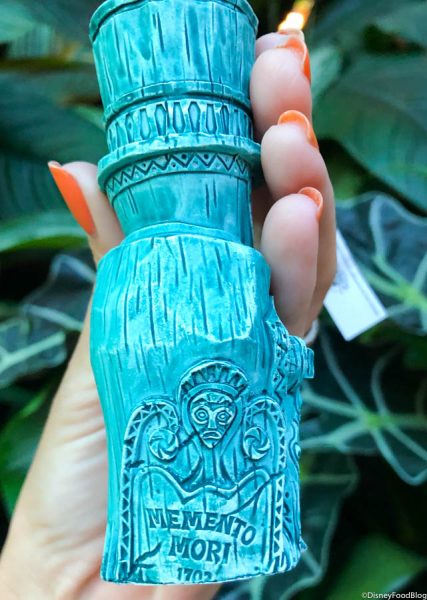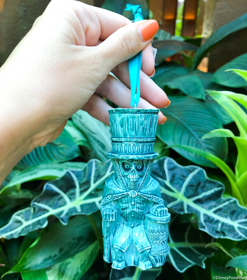 This mug is a teal color and like the ornament, features Hatbox Ghost’s head place safely upon his shoulders. Like at Disneyland, this has to be purchased with the Grim Grinning Grog.