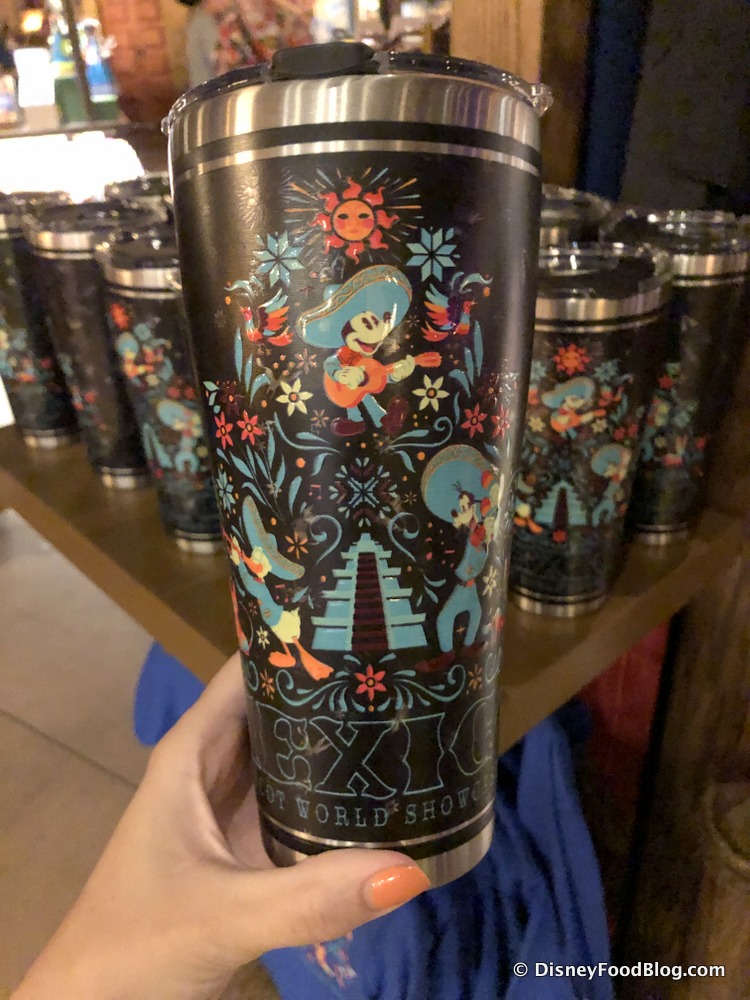 There’s even more adorable drinkware in this collection including the new Mexico Tumbler for $39.99. It features some colorful designs of the pavilion’s pyramid along with Mickey, Donald, and Goofy playing musical instruments!