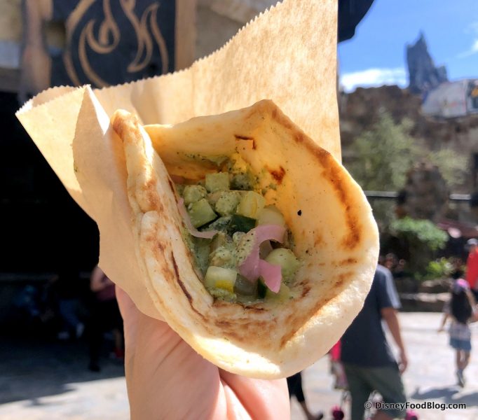 RED ALERT!!! While we reported yesterday that there’s a new Ronto-less Garden Wrap at Ronto Roasters in Disneyland’s Galaxy’s Edge, a new Chicken Ronto Wrap has just entered the Battu’s atmosphere in Disney World!!!