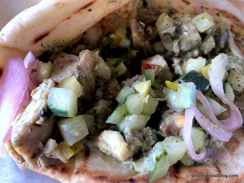 But we didn’t think the yogurt sauce was especially flavorful — it lacked some of the zippiness we were expecting. The sauce was still tasty though, and made the Chicken Ronto Wrap very light and refreshing for a big pita bread sandwich!