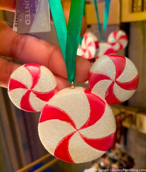 We love the classic look of peppermint spirals making up a Mickey ornament.