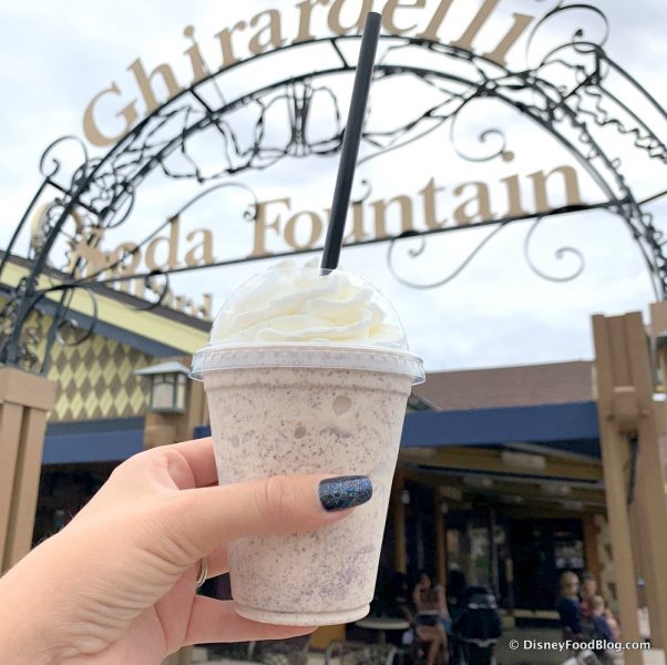Disney California Adventure Park’s Pacific Wharf Ghiradelli’s menu has had the Quake Shake some time, but we hadn’t seen it available at the Disney Springs’ Marketplace location until recently!
