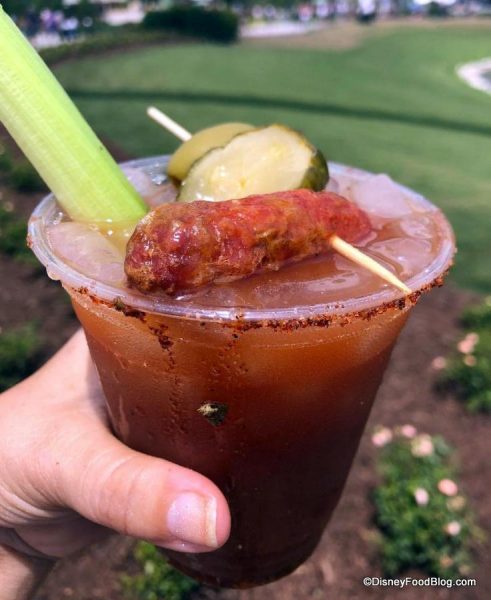 You already had us at Bloody Mary, but guys, this is a Barbecue Bloody Mary! The salty, tomatoey goodness comes with — get this — a piece of smoked garlic sausage, a house-made pickle, and the cup is rimmed with MUSTARD and a barbecue spice RUB!!! It’ll cost you $16 for this drink/meal in a cup! Sure, it’s EXTRA, but most good things in life are, bb!