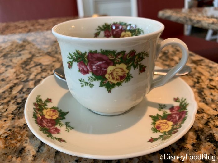 Upon being seated, our table was arranged with lovely rose-patterned teacups…