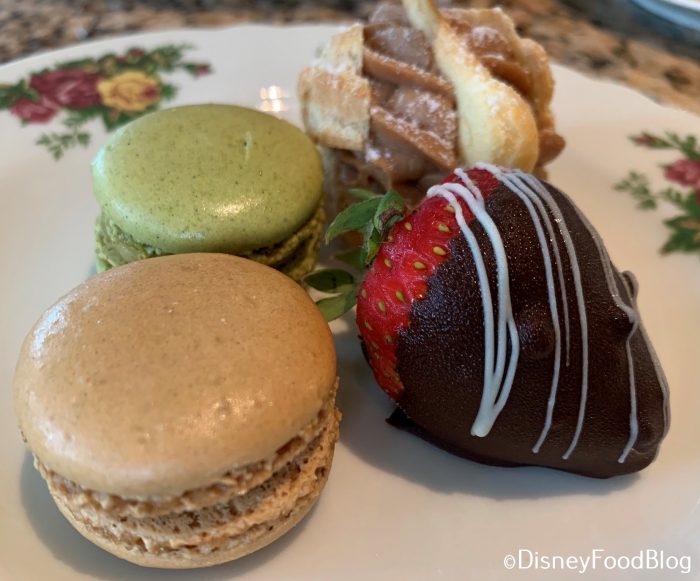 There is also the Mrs. Potts Tea ($23.79) available for guests aged 3-9, which includes kid-friendly tea sandwiches, a tart, “tea” (it’s chocolate milk!), and dessert. And sorry but no, it is not served in a teapot that looks like Mrs. Potts! Maybe one day. 😉