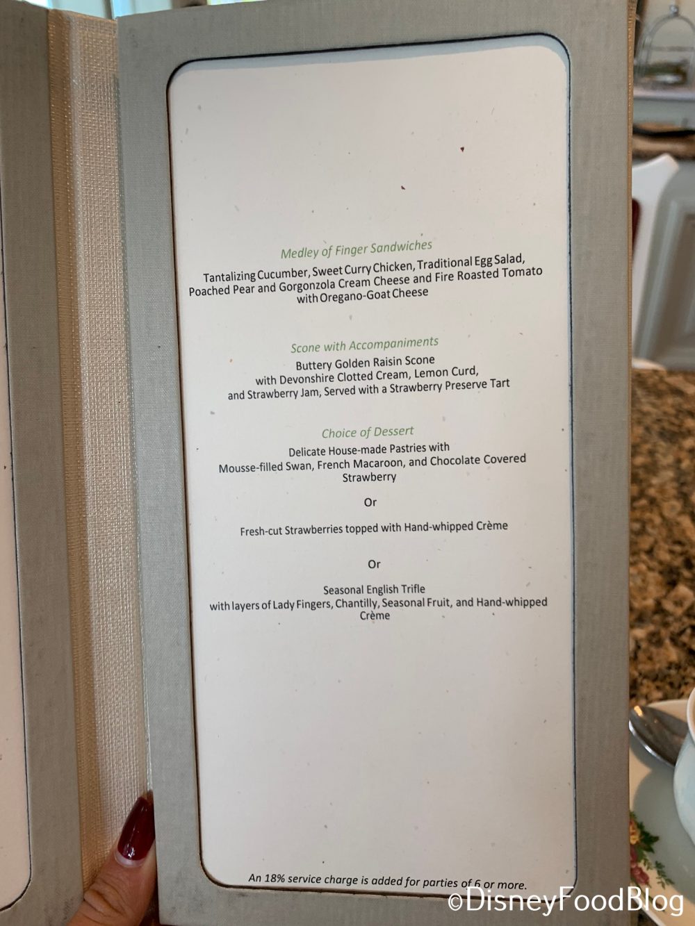 Tea at the Grand Floridian is the most delicious tea my daughter and I have ever had. Took my good friend there once for her birthday on Pearl Harbor Day in December. My husband and my mother (97) have also enjoyed this with me. It’s worth every penny and the service is just wonderful. The female servers are dressed in such wonderful attire and the Garden View Tea Room is to die for with the fabulous Victorian décor. The package you ordered, AJ, is the one I always get. My daughter and I have been to the Ritz Carlton Hotel near us a couple of times for tea that is very nice, but the Grand Floridian is THE BEST. The amount of SUPER DELICIOUS food you get is more than enough for lunch and the tea is so delicious. A few years ago in February we went for my daughter’s birthday and were seated right next to the window where we could see the horse drawn wedding coach drive up outside on the walkway and pick up the bride and some of her wedding party!!! How fabulous was that.!!!!!!! This is definitely a must do if you like going to tea. Disney’s is the BEST.