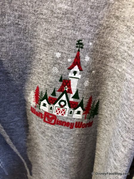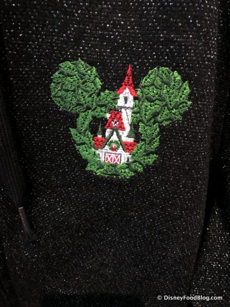The hoodie also has a lovely embroidered detail on its front of a castle within a Mickey-shaped wreath! SO CUTE!