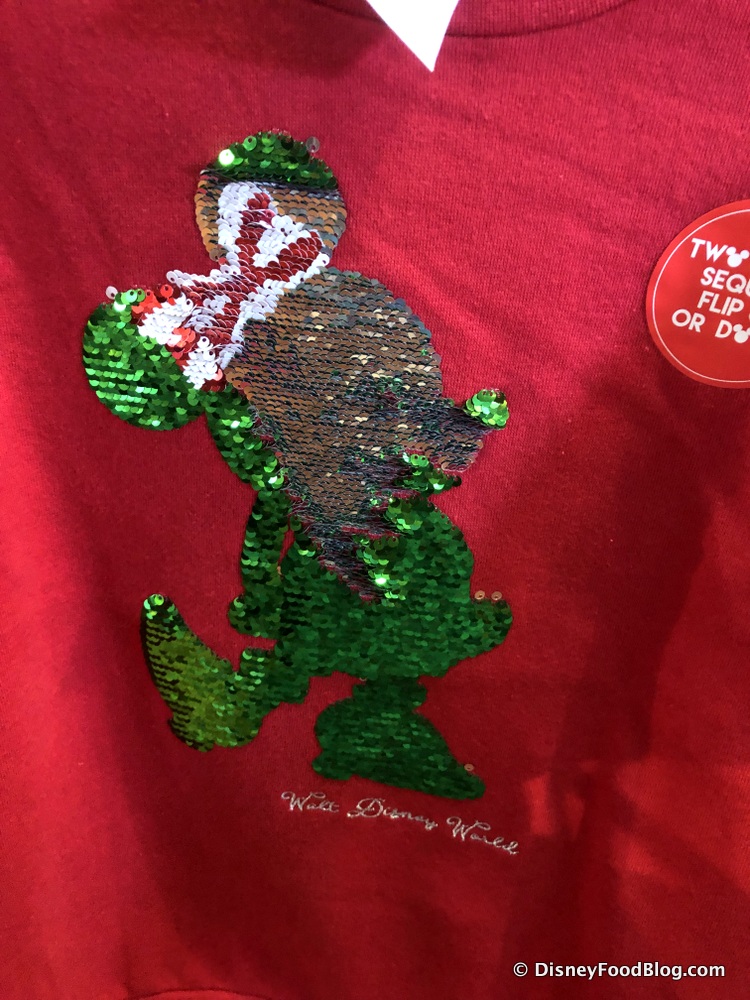 But we are also kinda obsessed with this Minnie Christmas Sweatshirt for $54.99 with reversible sequins! It’s so on-trend and Christmasy!