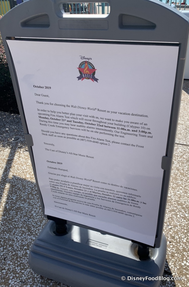 We also spotted this strange-looking letter sign. It had All-Star Music’s letterhead on it and was a notice regarding the resort’s fire alarm — interesting stuff!