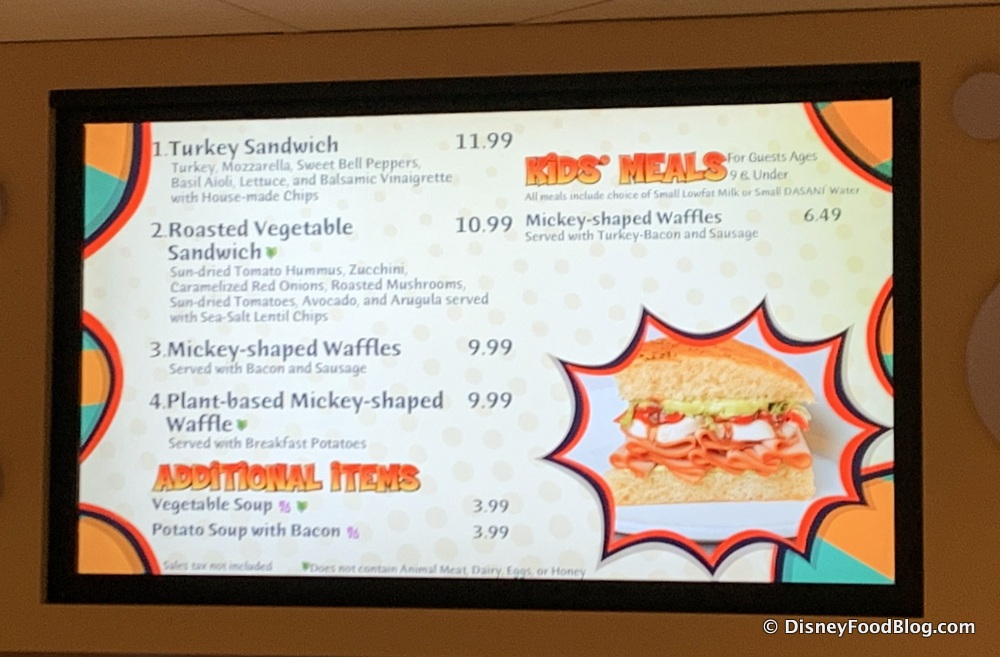 We noticed they’ve swapped out their previous Vegetable Sandwich for a Roasted Vegetable Sandwich and have added Plant-based Waffles to their menu! Thankfully our beloved Turkey Sandwich is still being offered!
