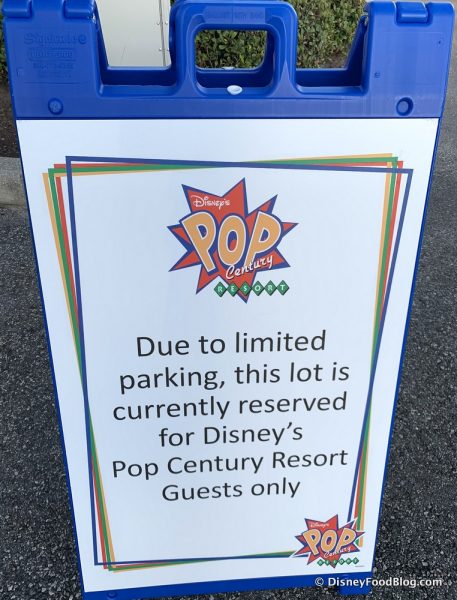 We noticed a few “No Parking” signs at the security point as we made our approach to Disney’s Pop Century. Since Disney’s Skyliner opened, lots of parkgoers have been parking at Pop Century and Art of Animation, limiting the number of spots that are available to the guests staying at either of the resorts. We noticed these signs were at Disney’s Art of Animation, as well!